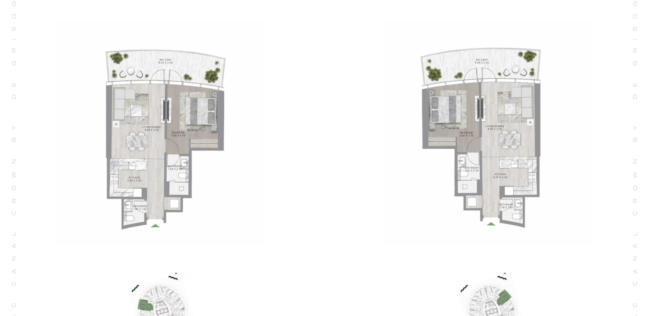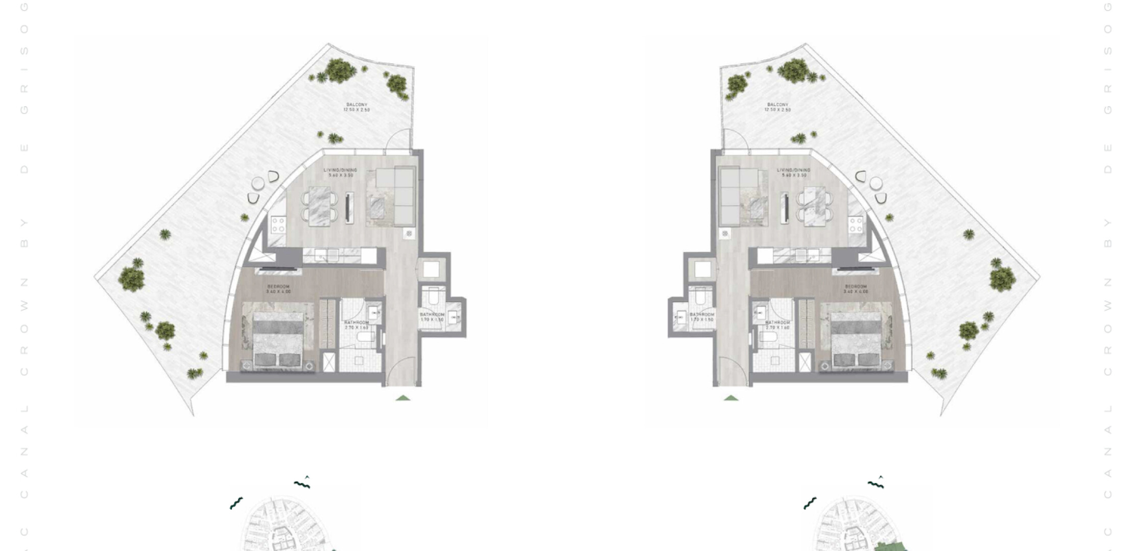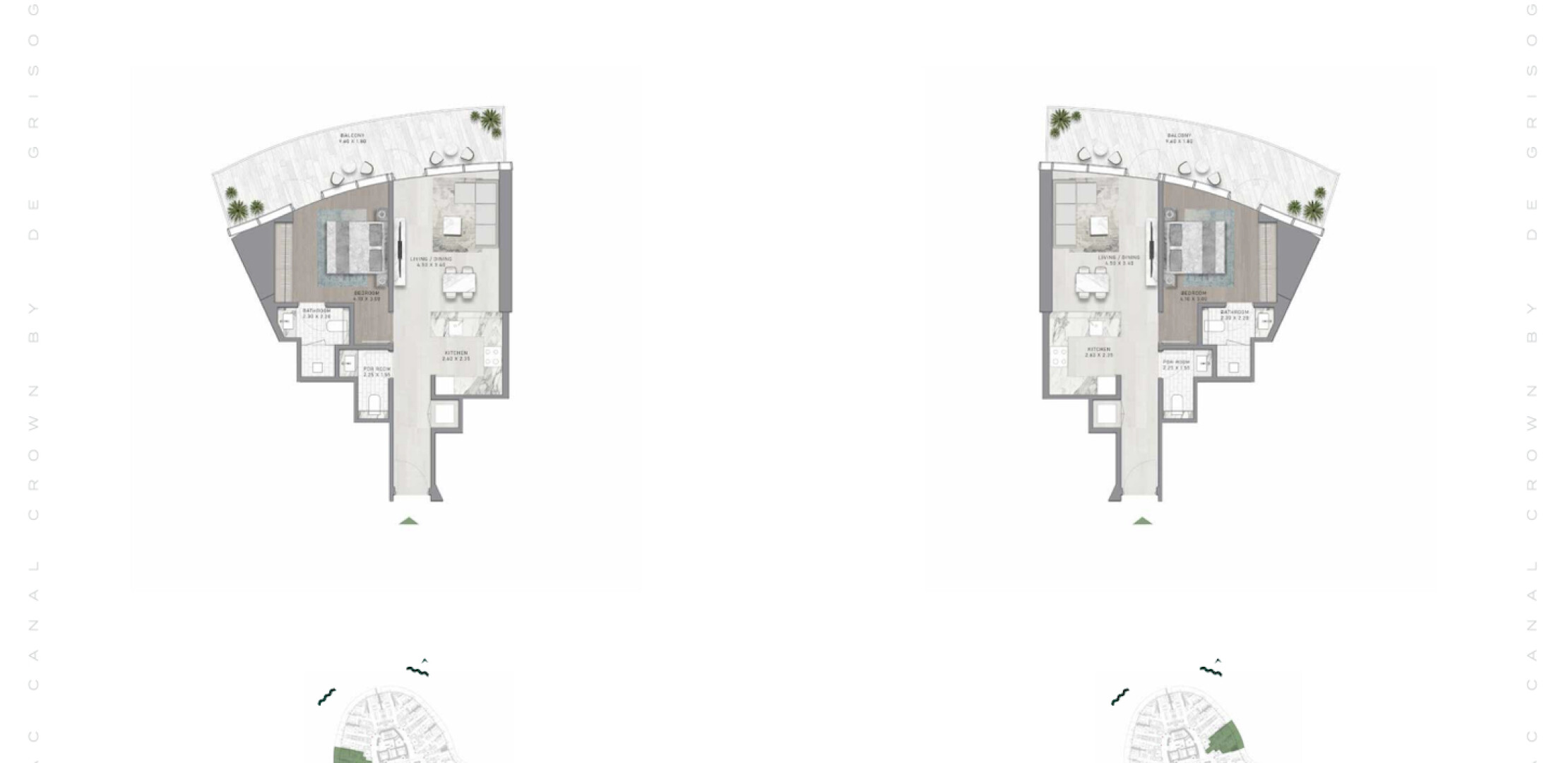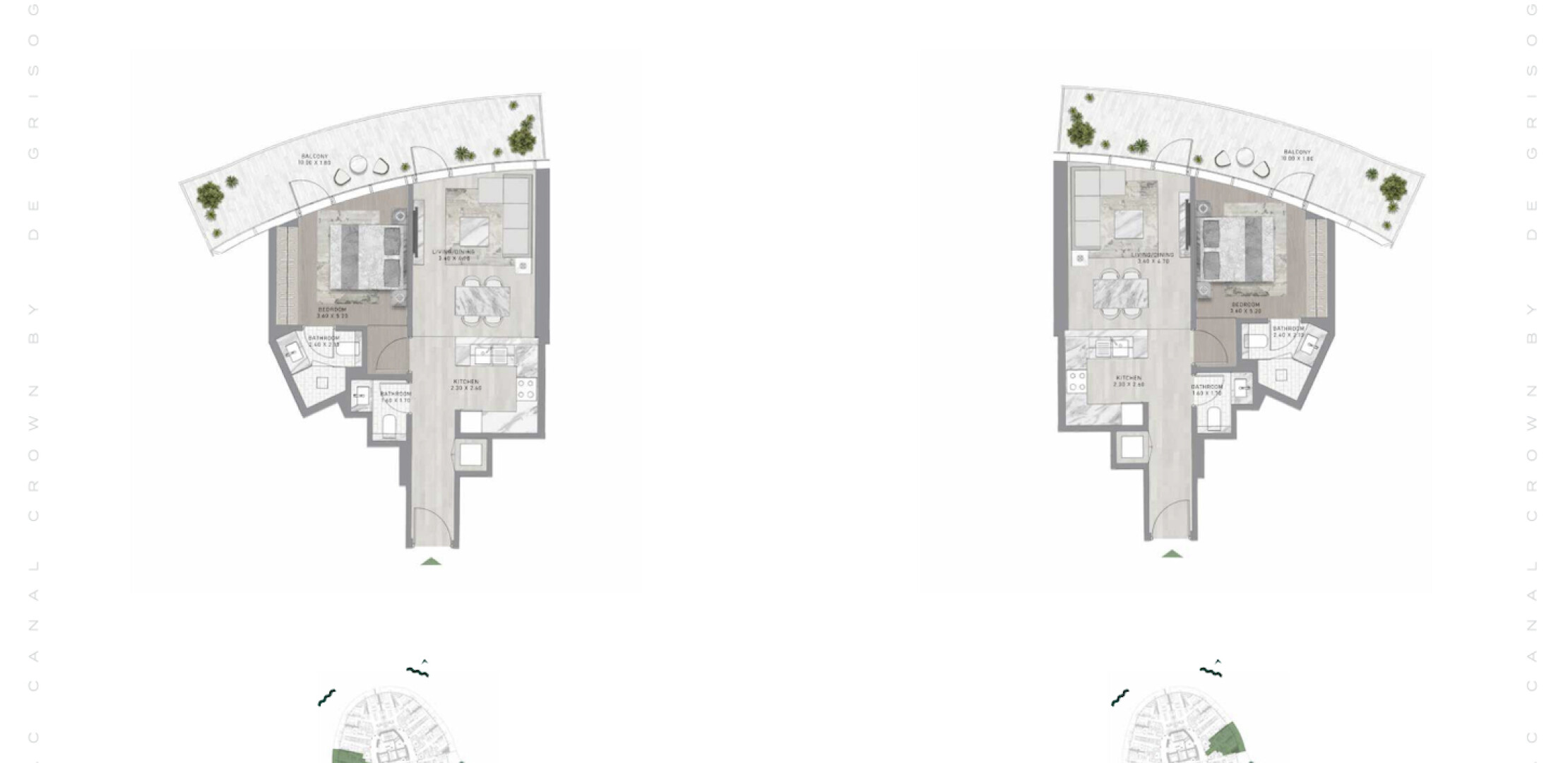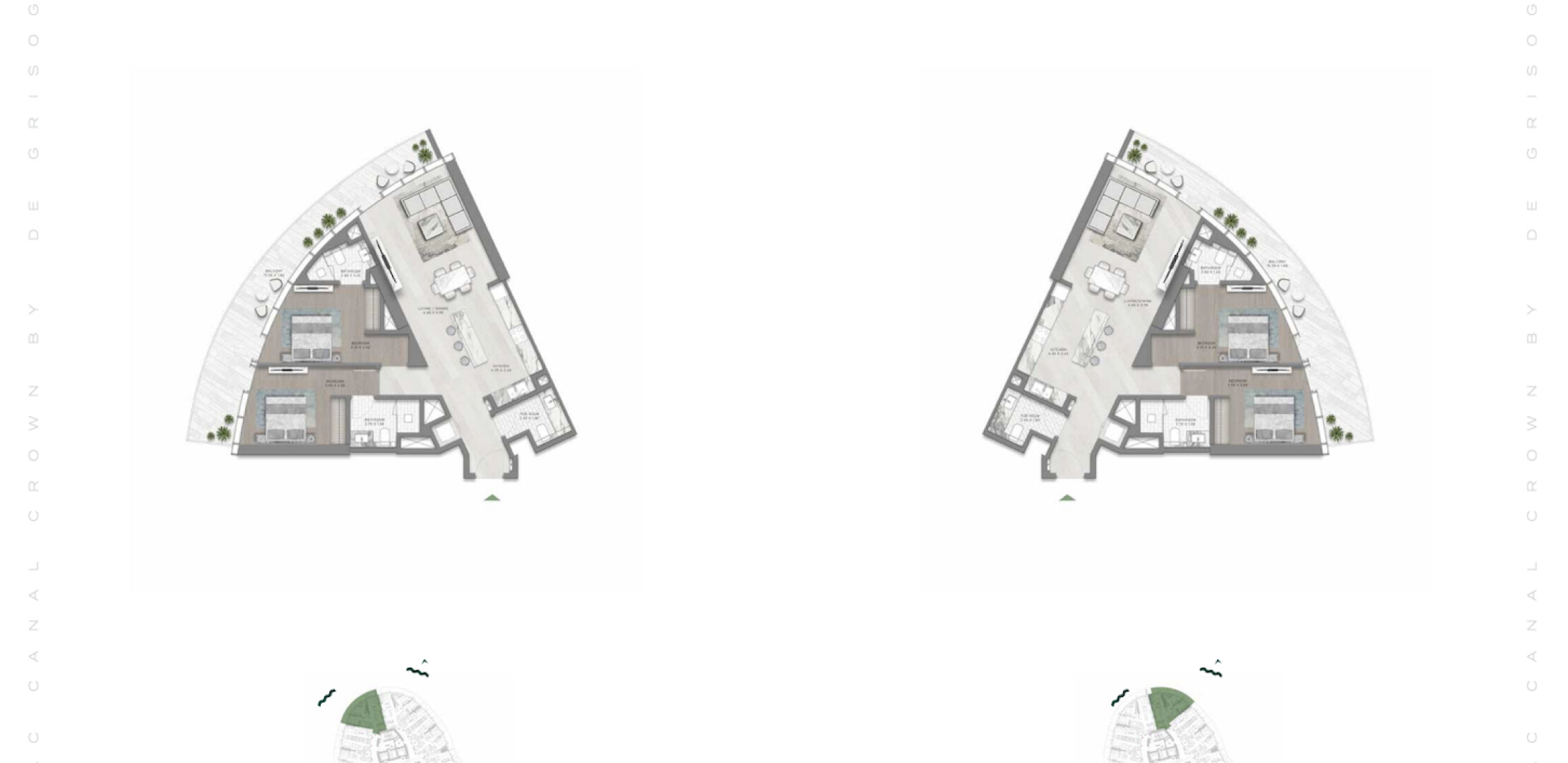 Canal Crown — это архитектурный шедевр, возвышающийся над набережной Дубайского канала. Проект представляет собой мир, выходящий за границы времени и пространства, предлагающий безмятежную жизнь у воды. Вдохновленный сиянием перидота, каждый элемент здания и интерьеров создает эфемерный, неземной опыт. Жителям предлагается футуристический образ жизни с космическими мотивами, начиная от поражающего воображение лобби и заканчивая садами, вдохновленными планетами, и роскошными удобствами, включая променад с ресторанами и бутиками, а также захватывающими видами на канал и океан.