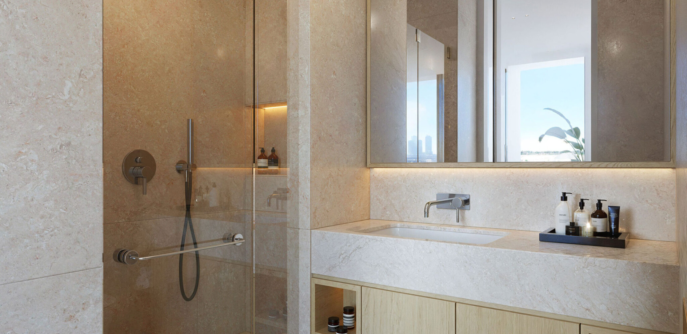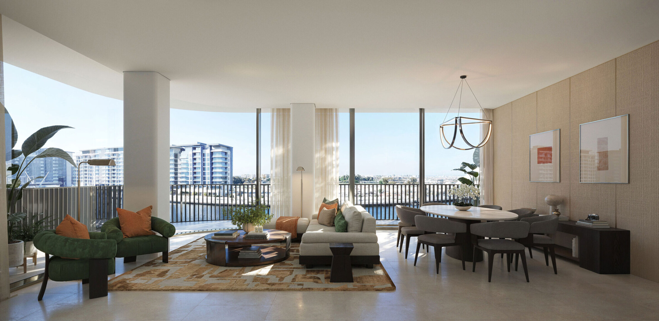 Все резиденции оснащены просторными балконами, высокими потолками и панорамными окнами, обеспечивающими великолепные виды на канал, город и зеленые зоны.