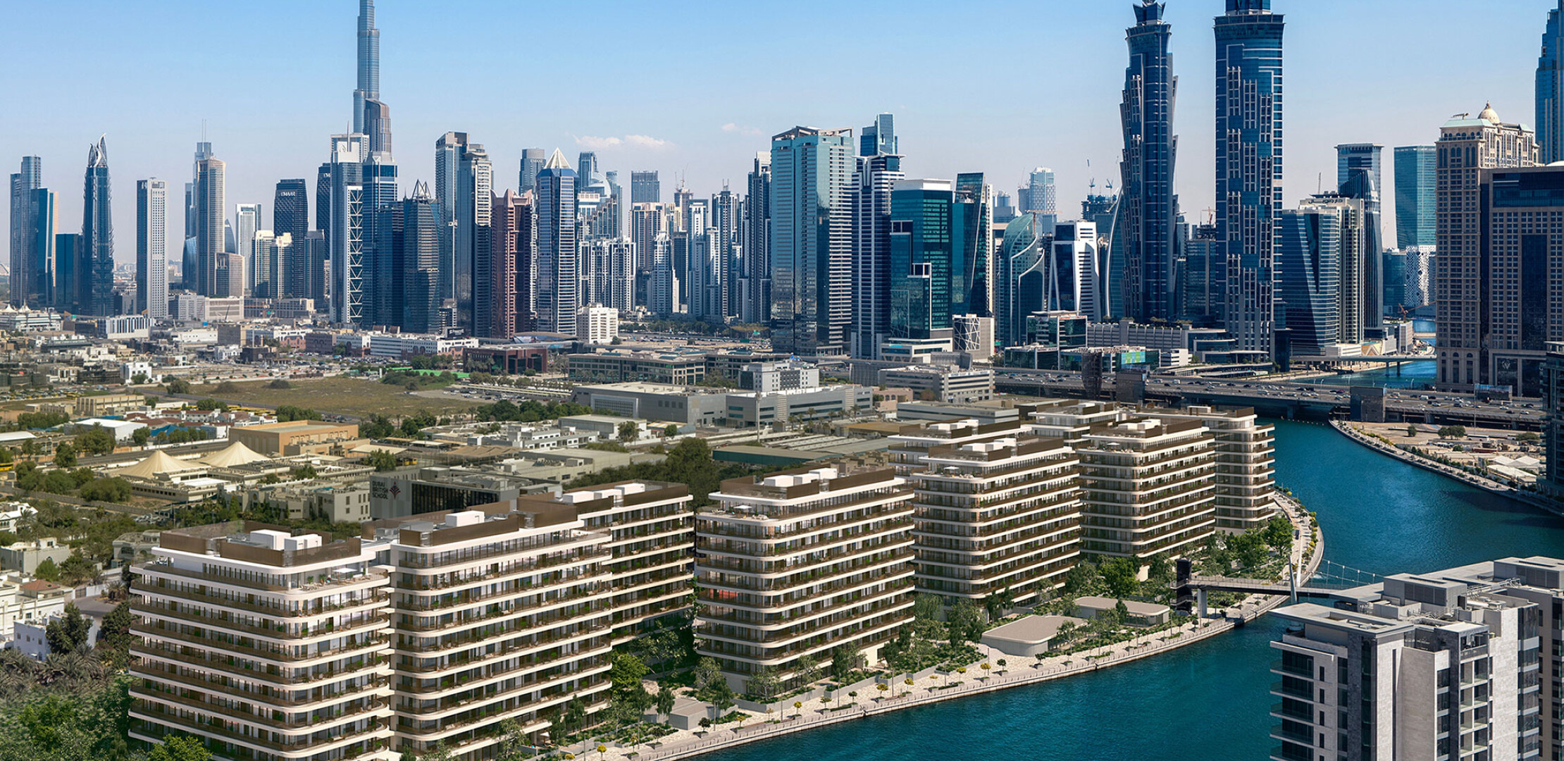 Комплекс расположен в районе Джумейра 2, вдоль Дубайского водного канала. Такое расположение обеспечивает жителям легкий доступ к ключевым достопримечательностям города, включая Safa Park, Business Bay и Downtown Dubai. Близость к Sheikh Zayed Road гарантирует отличную транспортную доступность.