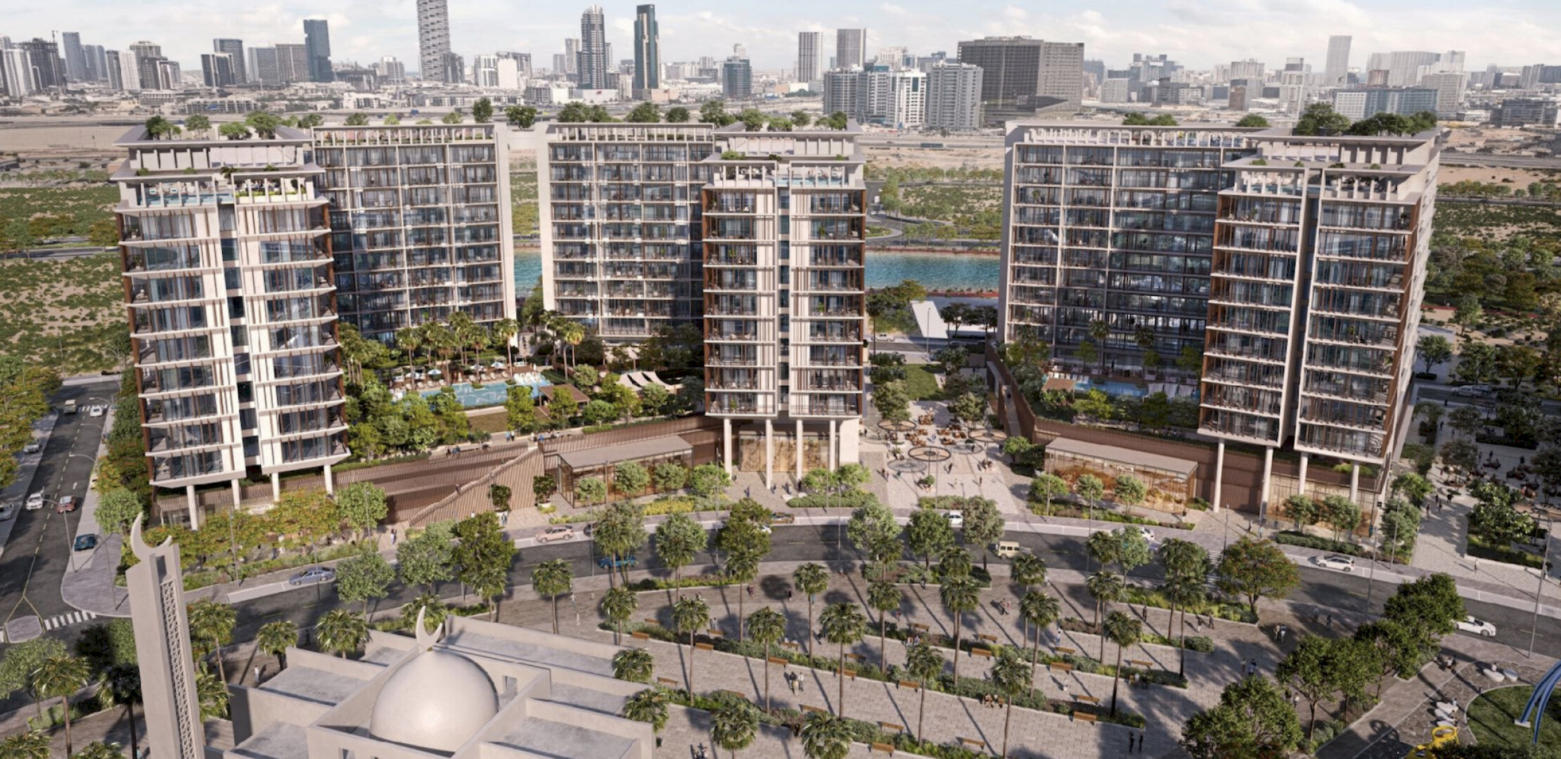 Elm — это премиальный жилой комплекс, расположенный в спокойной и живописной местности Dubai Production City. Проект сочетает в себе современную архитектуру, гармонично вписанную в природное окружение, и предлагает жителям высокий уровень комфорта. Здесь созданы идеальные условия для жизни: просторные апартаменты, множество удобств и близость к ключевым объектам инфраструктуры. Комплекс идеально подходит для тех, кто ценит баланс между урбанистическим стилем жизни и природной гармонией.