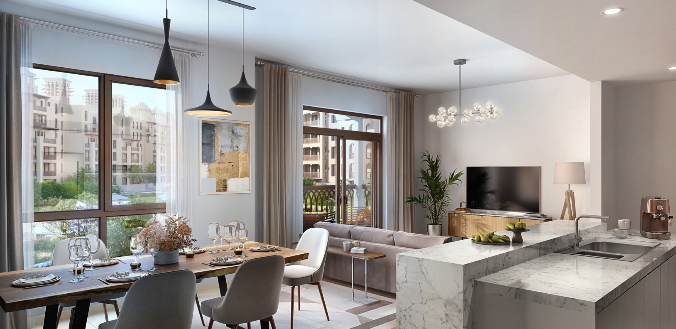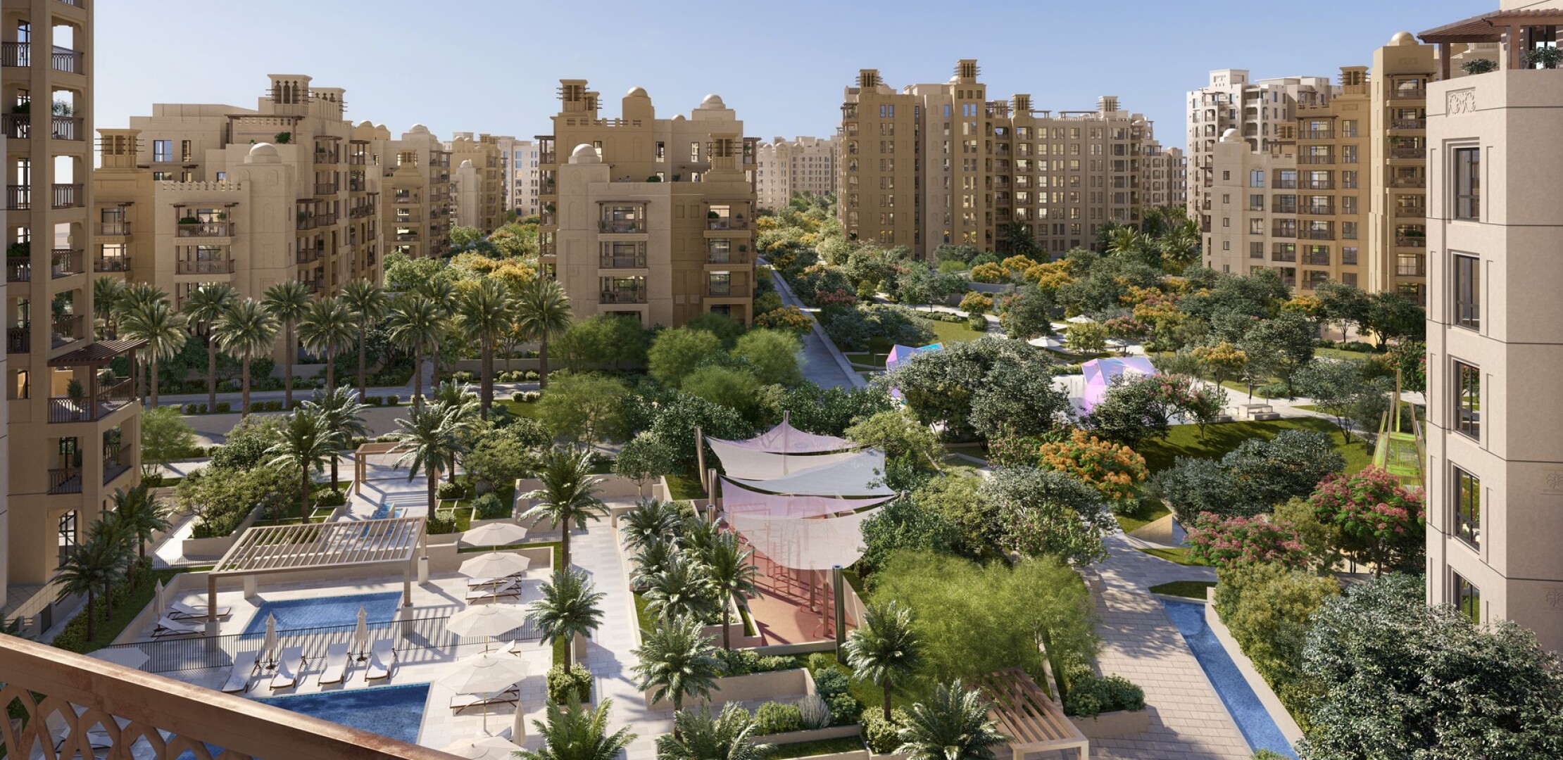 Jadeel — это современный жилой комплекс в престижном районе Madinat Jumeirah Living, окруженный классической арабесковой архитектурой и зелеными насаждениями. Комплекс предлагает 1-4-комнатные апартаменты с великолепными видами на Burj Al Arab, просторными спальнями, роскошными интерьерами и развитой инфраструктурой.
