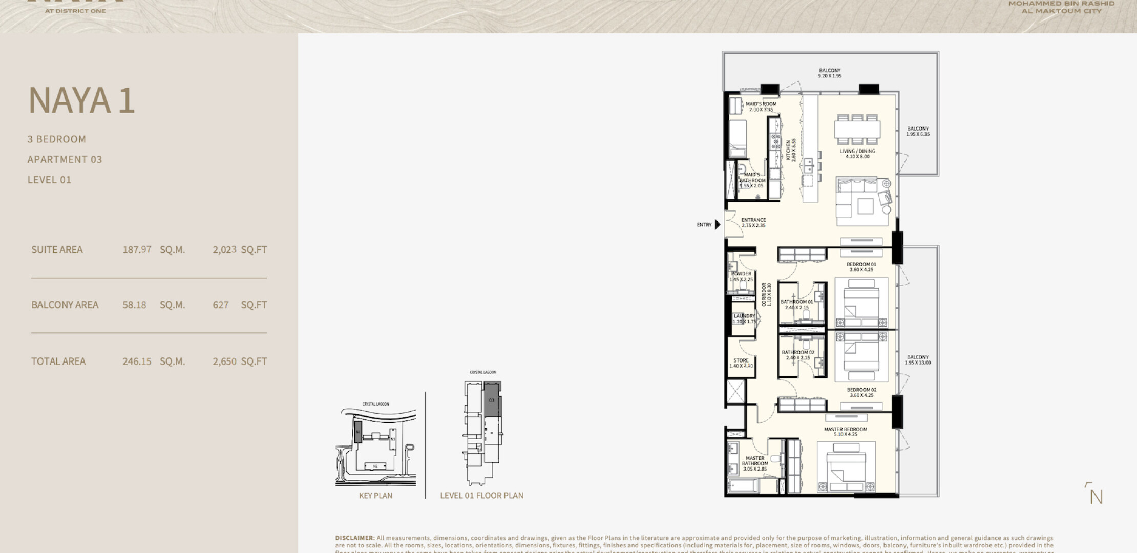 NAYA — это уникальный жилой комплекс, вдохновленный курортным стилем, расположенный на берегу искусственной кристальной лагуны в престижном районе Mohammed Bin Rashid Al Maktoum City. Проект предлагает жильцам образ жизни, основанный на wellness, с обширными зелеными зонами, современными удобствами и потрясающими видами на лагуну и горизонт Дубая. Комплекс включает три жилые башни с разнообразными типами апартаментов, от однокомнатных до четырехкомнатных, а также виллы у лагуны.
