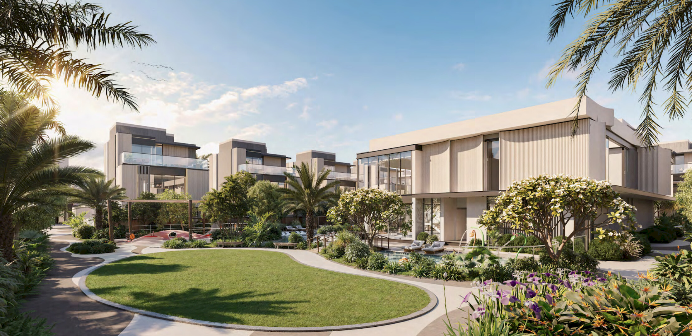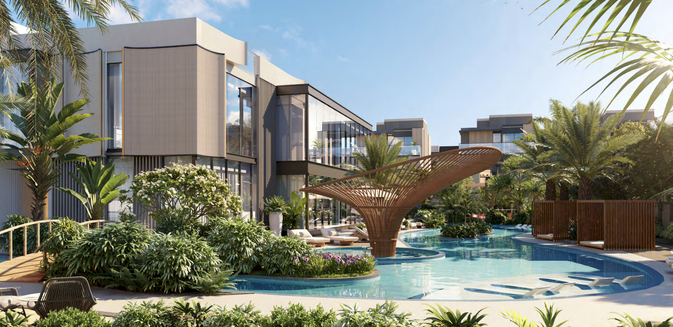 The Watercrest — это элитный жилой комплекс, расположенный в эксклюзивном районе Mohammed Bin Rashid City. Проект сочетает в себе современный дизайн, гармонию с природой и высокий уровень комфорта. Комплекс включает виллы и таунхаусы, окруженные lush walled garden с искусственной рекой, создающей атмосферу уединенного оазиса. Удобства включают фитнес-центр, спа-зону, детский клуб, зоны для отдыха и развлечений, а также безопасные пешеходные дорожки. The Watercrest идеально подходит для семей, ценящих спокойствие и близость к природе, но при этом желающих оставаться в центре событий Дубая.